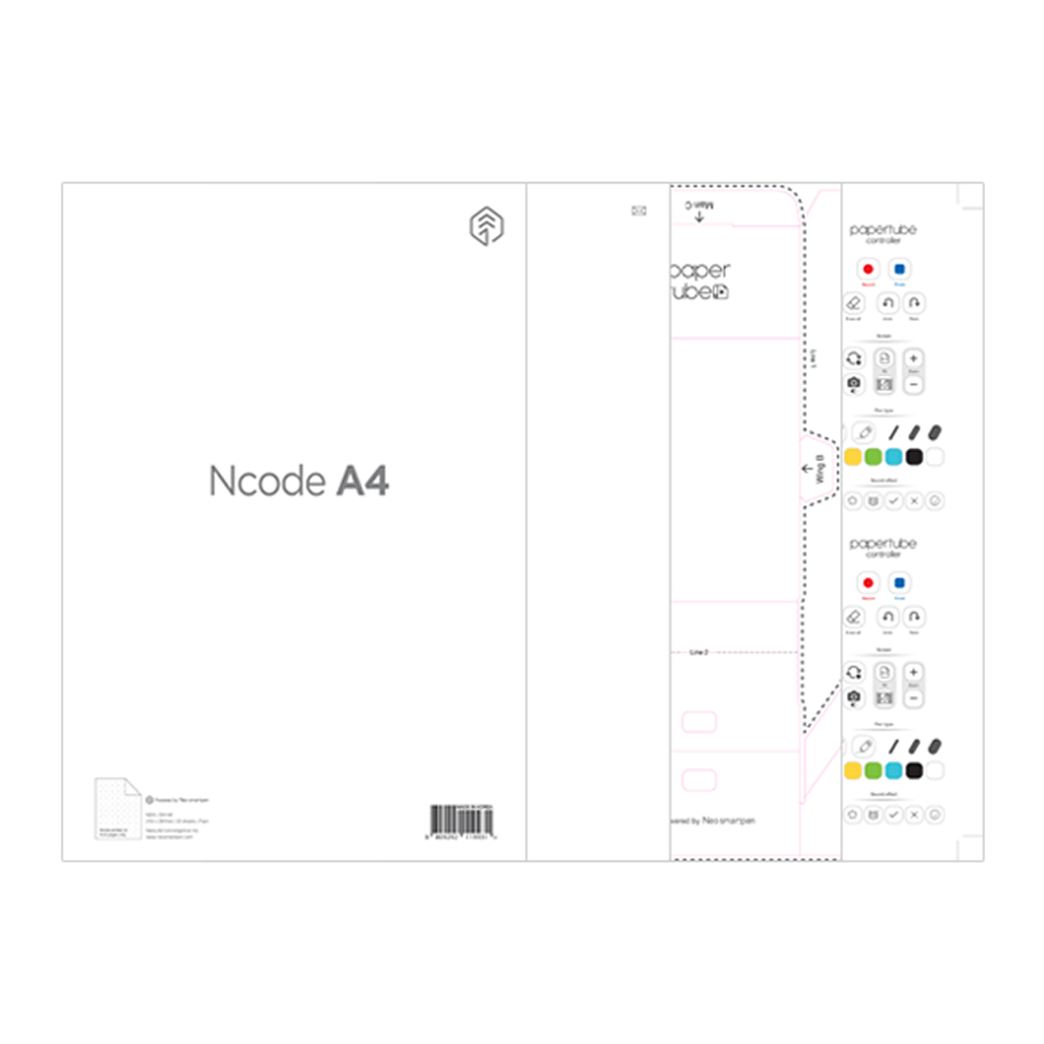 Ncode A4 comes as a package including A4-sized sheets and a PaperTube controller packed with various functions, allowing you to make the most of PaperTube.