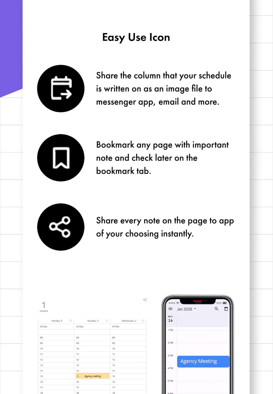 *Supported Calendar app: Google Calendar, iCal, Outlook Calendar